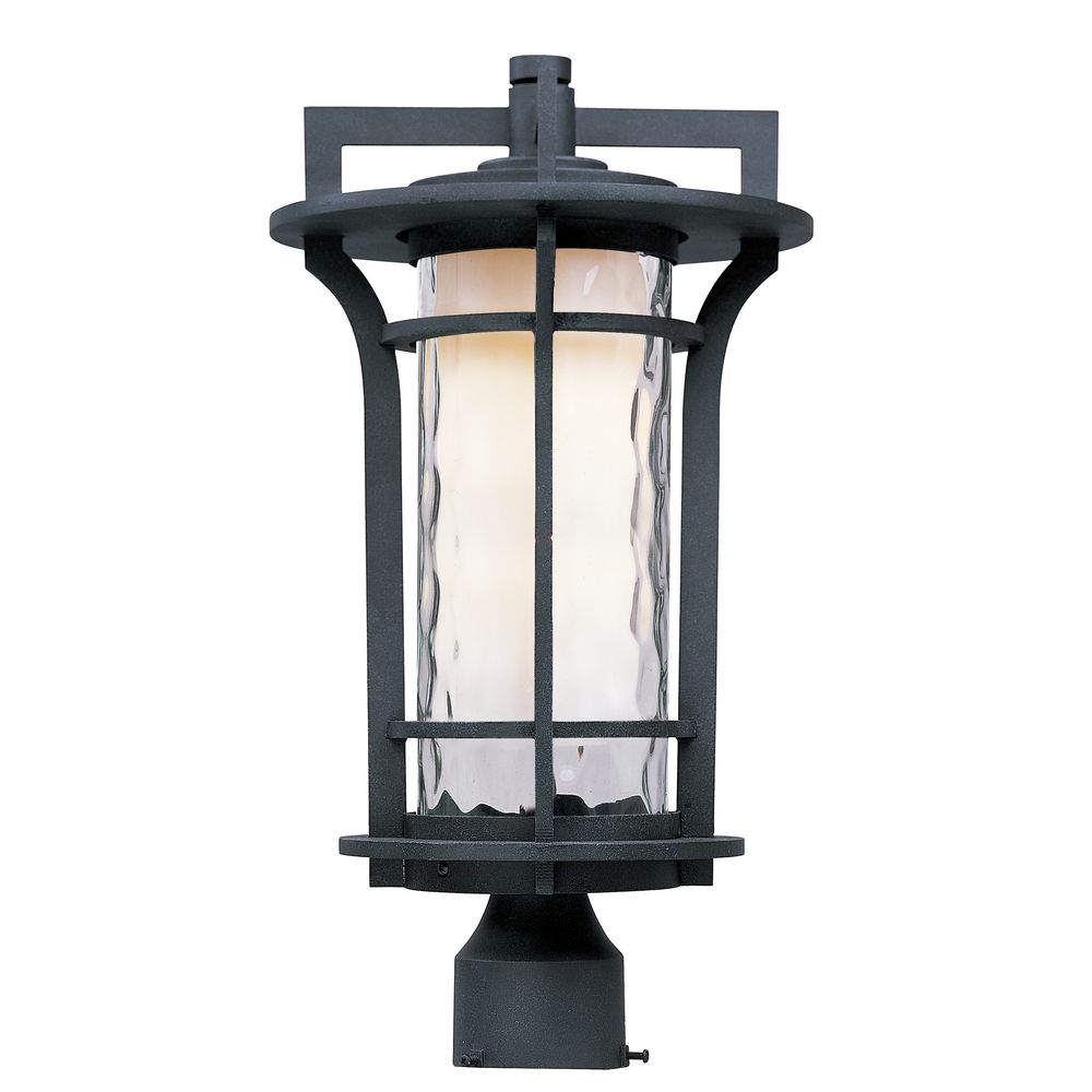 Maxim 30480WGBO Oakville Clear Water/Satin White Glass Cylinder Outdoor Post/Pole Mount, 1-Light 60 Watt, 18"H x 10"W, Black Oxide