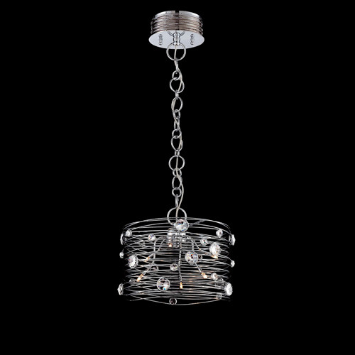 Eurofase 26341-019 Corfu Crystal Drum Pendant Light, 6-Light 60 Total Watts, 11"H x 13"Dia, Chrome