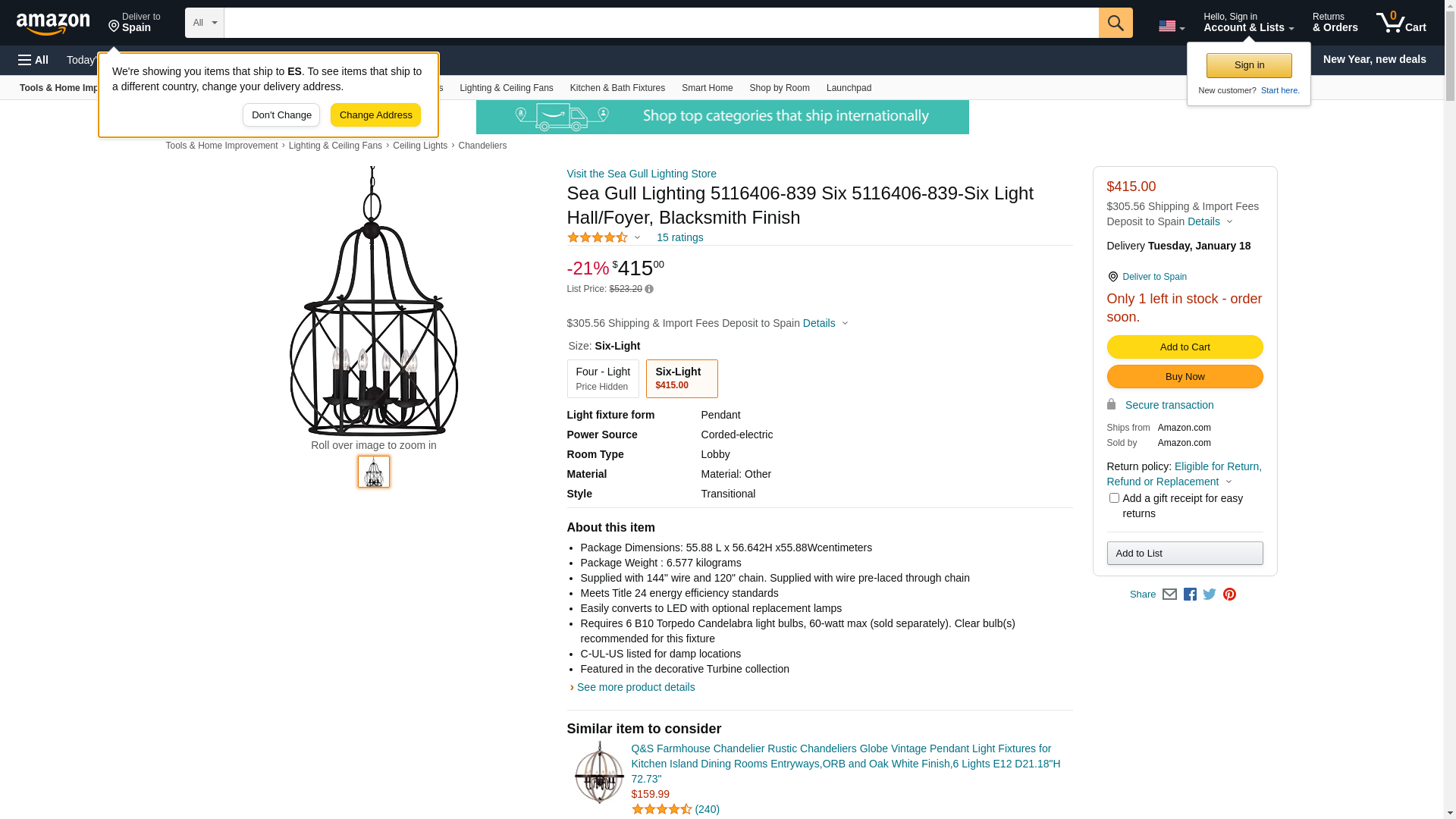 | Manufacturer | Sea Gull Lighting |