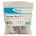 The 25-pack voice modular connectors RJ-11 keystone jacks are 6-position 6-conductor 6P6C and Category 3 CAT 3. They are packaged in bags designed with a reseal able strip allowing the bags to be reused multiple times preventing loss or mixing of colors or types of connectors. The bags have a clear lower area allowing for easy part identification.