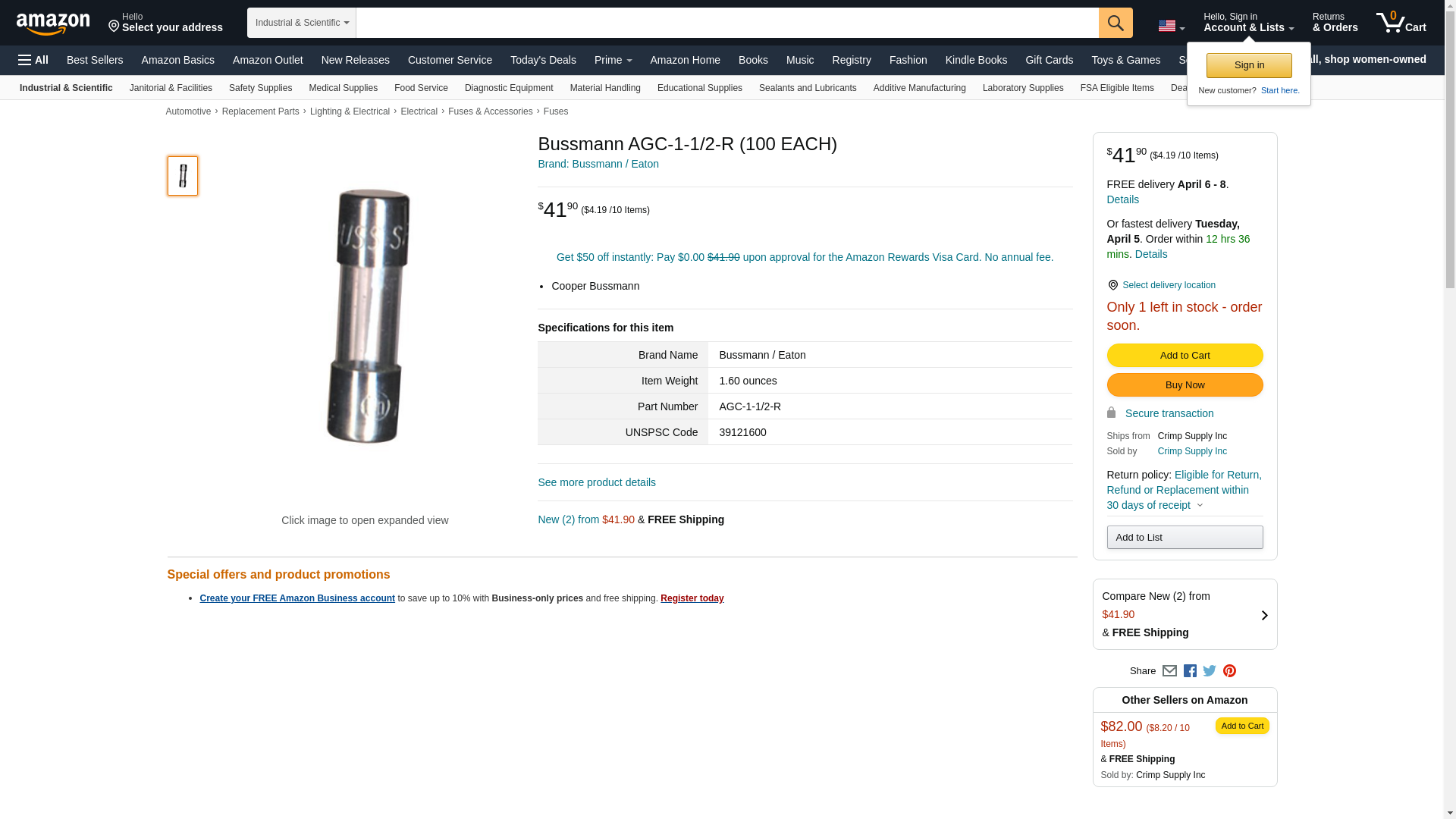 | Waldom | EATON BK/AGC-1-1/2-R | 1 | 1 | 1 @ $0.66, 25 @ $0.63, 50 @ $0.62, 100 @ $0.60, 1000 @ $0.20, 5000 @ $0.19, 10000 @ $0.19 | |