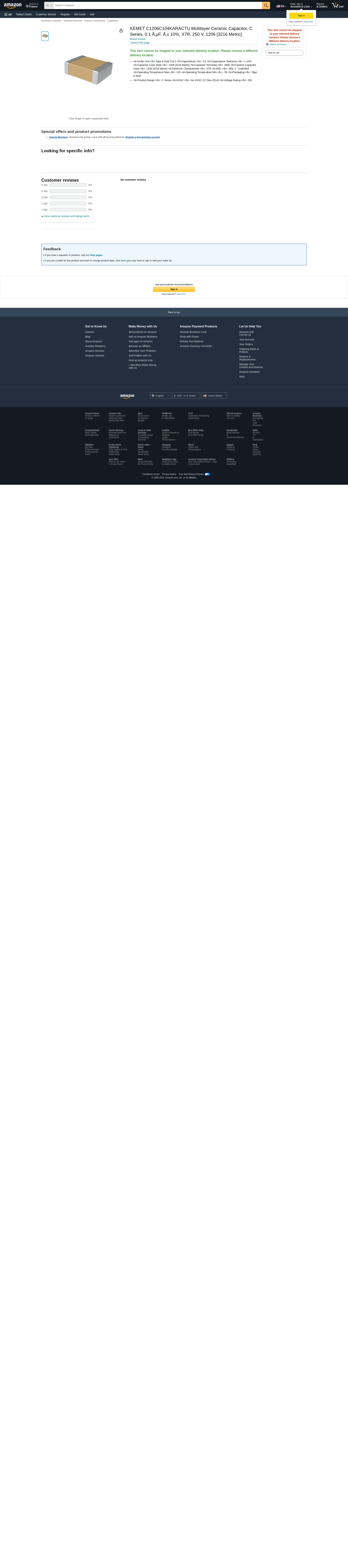 | Feature | <b>Order Unit:</b> Tape & Reel Cut\xa01 <b>Capacitance:</b>: 0.1 <b>Capacitance Tolerance:</b>: \xb1 10% <b>Capacitor Case Style:</b>: 1206 [3216 Metric] <b>Capacitor Terminals:</b>: SMD <b>Ceramic Capacitor Case:</b>: 1206 [3216 Metric] <b>Dielectric Characteristic:</b>: X7R <b>MSL:</b>: MSL 1 - Unlimited <b>Operating Temperature Max:</b>: 125 <b>Operating Temperature Min:</b>: -55 <b>Packaging:</b>: Tape & Reel |