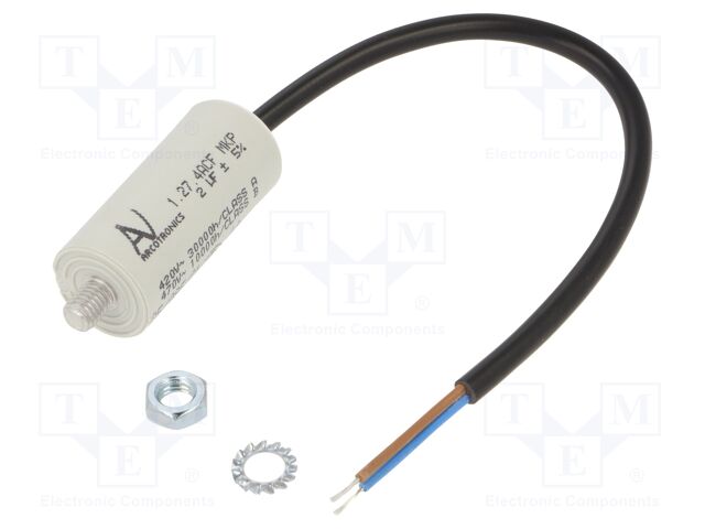 C274ACF4200LF0J, Cap Film 2uF 470VAC PP 5% (25 X 57mm) Stud Mount Plastic Cylindrical Can 85°C Bulk (10 Items)