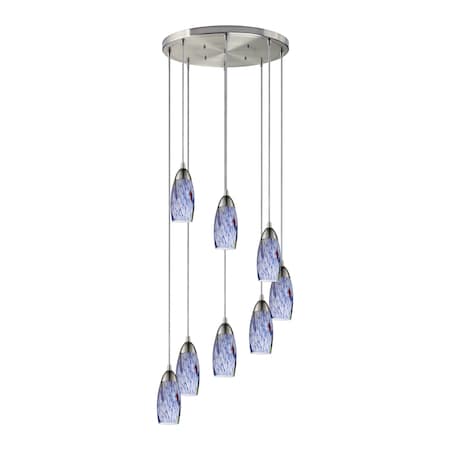 Elk Home Milan Mini Pendant - 8-Light in Satin Nickel Finish, with Starburst Blue Glass, Transitional Style