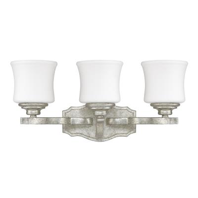 Capital Lighting 8553AS-299 Blair Soft White Glass Bath Vanity Wall Mount, 3-Light 300 Total Watts, 9" H x 20" W, Antique Silver