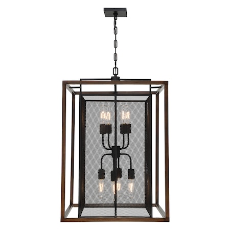 Rio Lobo - 8 Light Pendant - Dark Oak Finish with Black