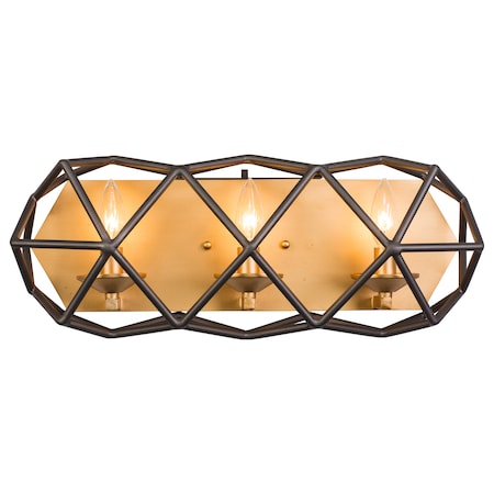 Varaluz 295B03AGRB Geo 3-Light Bath Fixture - Antique Gold with Rustic Bronze