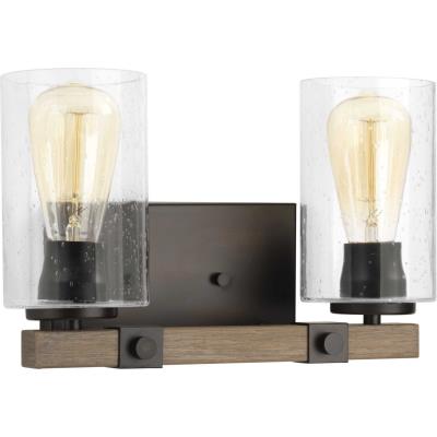 Barnes Mill 2-Light Bath Light in Bronze & Painted Wood by Progress Lighting | P300067-020 | Destination Lighting