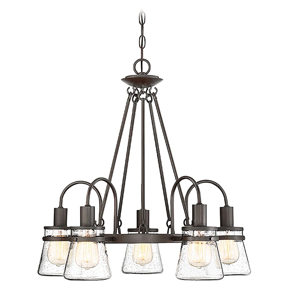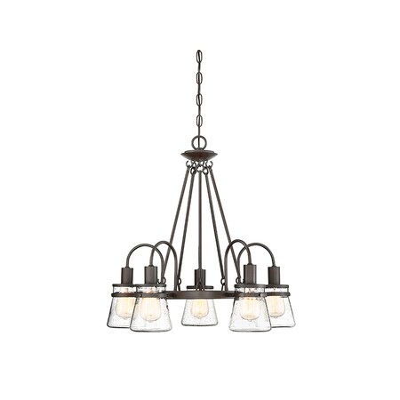 Bring rustic lighting style outside with the Savoy House Portsmouth 5-light outdoor chandelier! Clear seeded glass shades protect the light sources and are paired with an English bronze finish. This chandelier can be used in covered outdoor spaces.