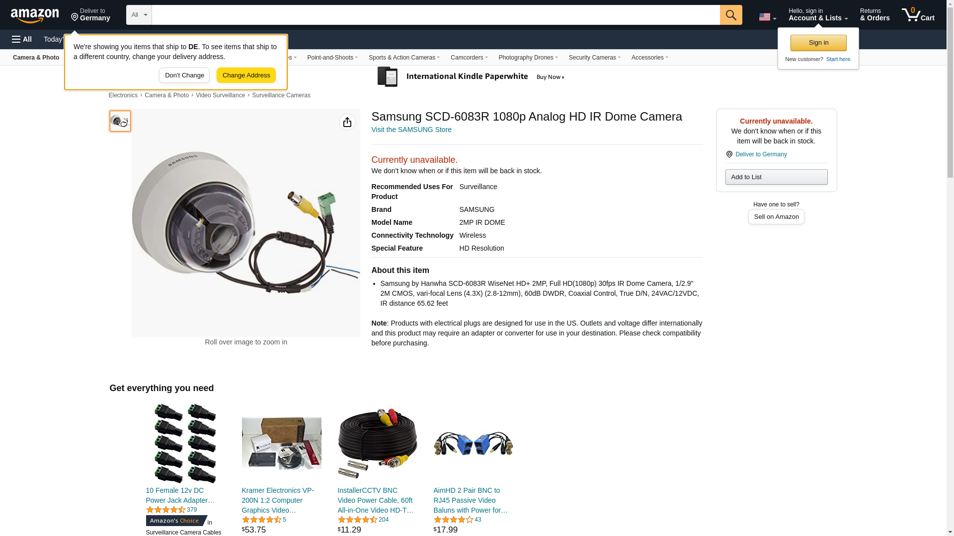 - Samsung by Hanwha SCD-6083R WiseNet HD+ 2MP, Full HD(1080p) 30fps IR Dome Camera, 1/2.9" 2M CMOS, vari-focal Lens (4.3X) (2.8-12mm), 60dB DWDR, Coaxial Control, True D/N, 24VAC/12VDC, IR distance 65.62 feet