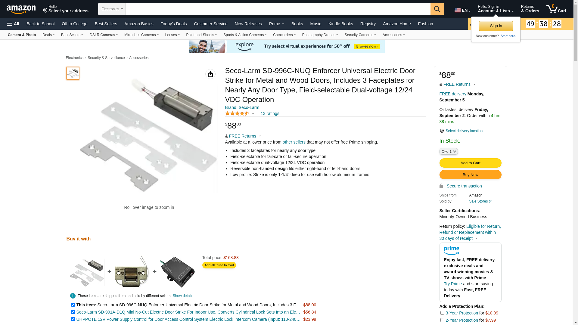 - SD-996C-NUQ Seco-Larm Fail-Secure or Fail-Safe Electric Door Strike for Metal Doors 24VDC