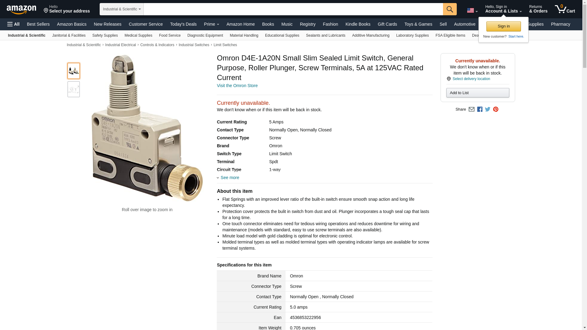 | Airline Hydraulics | OMRON D4E-1A20N | 1 | 1 | 1 @ $82.00 | |
