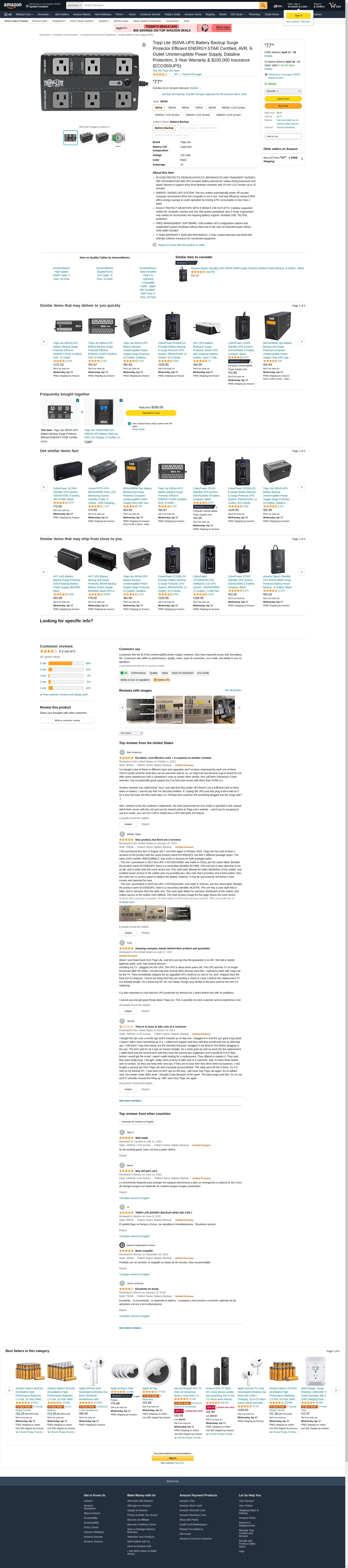 Amazon.com: Tripp Lite 350VA UPS Battery Backup Surge Protector Efficient ENERGY-STAR Certified, AVR, 6-Outlet Uninterruptible Power Supply, Dataline Protection, 3-Year Warranty & $100,000 Insurance (ECO350UPS) : Electronics