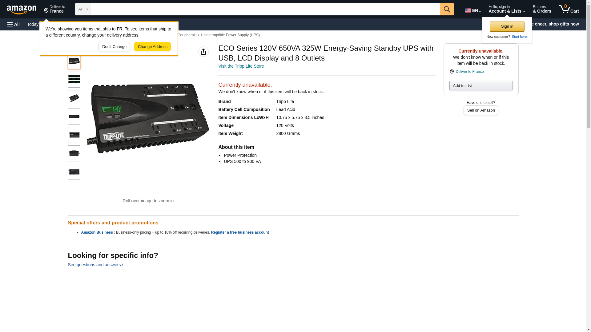| Feature | manufacturer: Tripp Lite; part number: ECO650LCD |