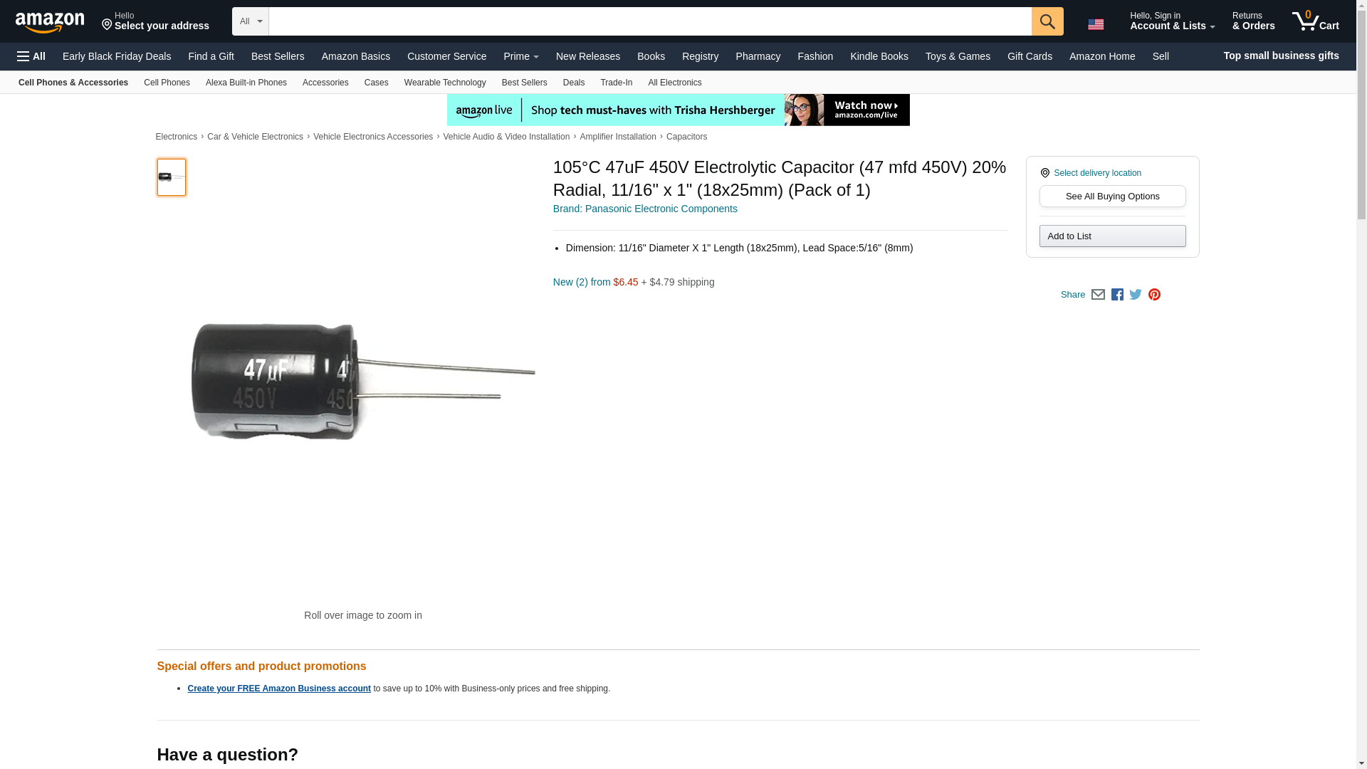| EEUEE2W470 | 10 | 110 | 10 @ $1.15, 100 @ $0.97, 500 @ $0.88, 1000 @ $0.84 | ||