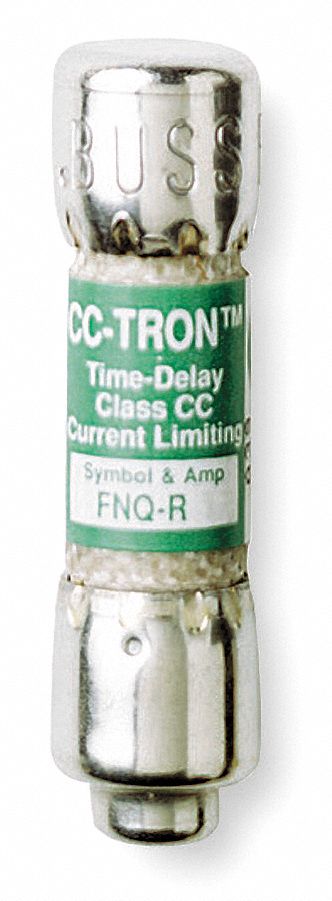 Featuring nickel-plated brass endcaps, this fuse provides control circuit transformer protection. The current limitation protects downstream components against the damaging thermal and magnetic effects of short-circuit currents.<br /><br /> Item: Fuse<br /> Fuse Amps: 1-1/8A<br /> Indicating / Nonindicating: Nonindicating<br /> Series: FNQ-R<br /> Fuse Voltage Rating: 600VAC<br /> Fuse Speed: Time Delay<br /> Class: CC<br /> Element: Dual<br /> Body Material: Melamine<br /> Rejection / Nonrejection: Rejection<br /> Body Style: Cylindrical<br /> Fuse Interrupt Rating: 200kA at 600VAC<br /> Length: 1-1/2"<br /> Diameter: 13/32"<br /> Functionally Equal To: Mersen/Ferraz Shawmut ATQR, Littelfuse KLDR<br /> Standards: CE/UL-248-4 Guide JDDZ/CSA Class 1422-01<br /> Green Environmental Attribute: RoHS Compliant<br />
