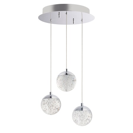 ET2 E24263-91PC Orb II Clear Bubble Glass Crystal Ball with Cap Round LED Pendant Ceiling Lighting, 3-Light 15 Total Watts, 6" H x 12" W, Polished Chrome