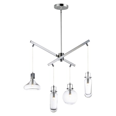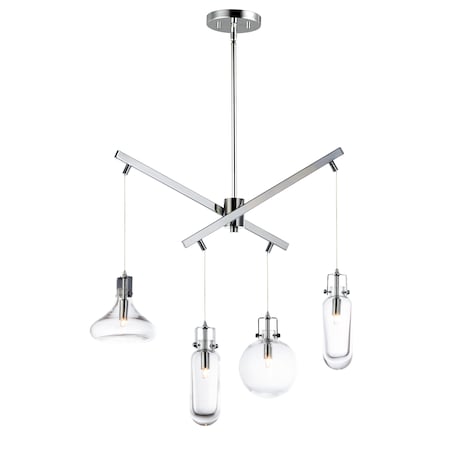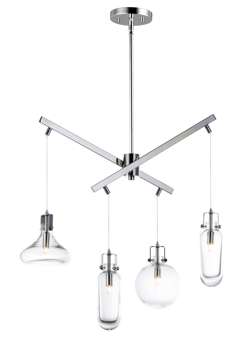 ET2 E24304-18PC Kem Thick Clear Glass Multi-Shape Pendant Ceiling Lighting, 4-Light Xenon 160 Total Watts, 26"H x 25"W, Polished Chrome