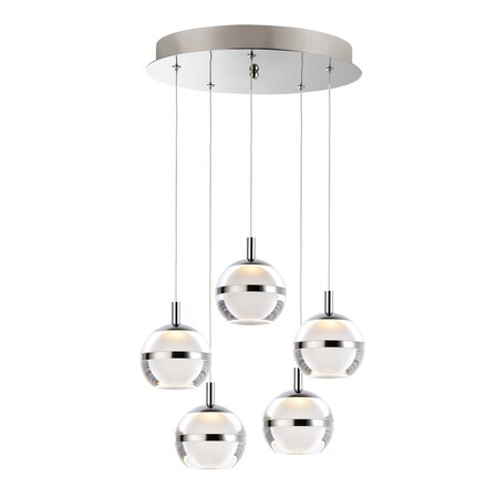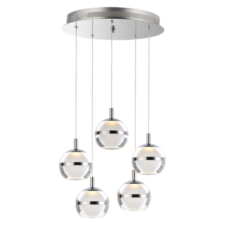ET2 E24595-93PC Swank Metal Band with Acrylic/Frosted Orb Pendant Ceiling Lighting, 5-Light 30 Watts, 6"H x 15"W, Polished Chrome