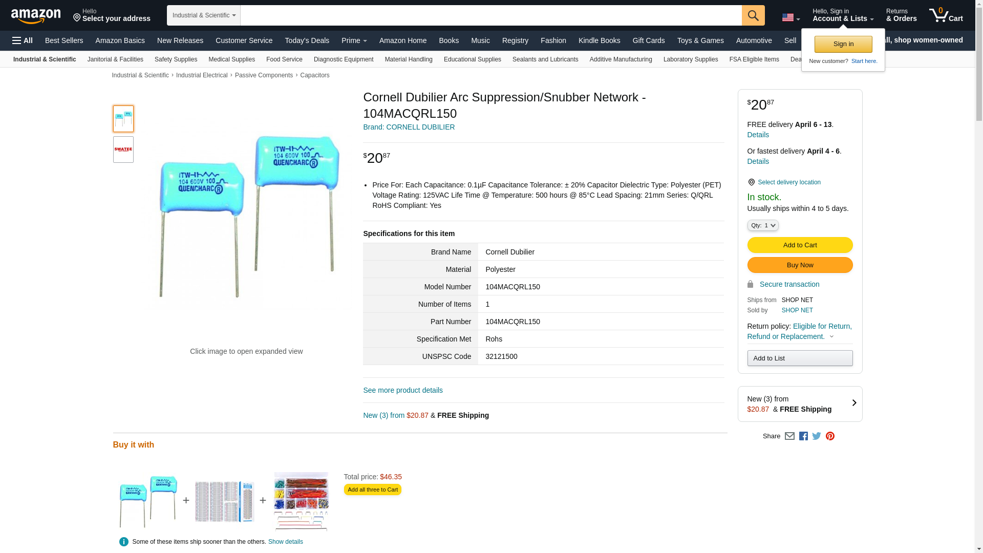Cornell Dubilier Arc Suppression/Snubber Network - 104MACQRL150