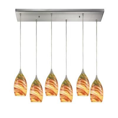 Elk Home Collanino Mini Pendant - 6-Light in Satin Nickel Finish, with Lava Swirl Blown Glass, Modern/Contemporary Style