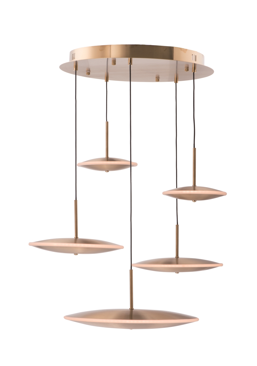ET2 E22827-SBR Cymbals Suspended Pan LED Pendant Ceiling Lighting, 5-Light 70 Total Watts, 8"H x 26"W x 27"L, Satin Brass