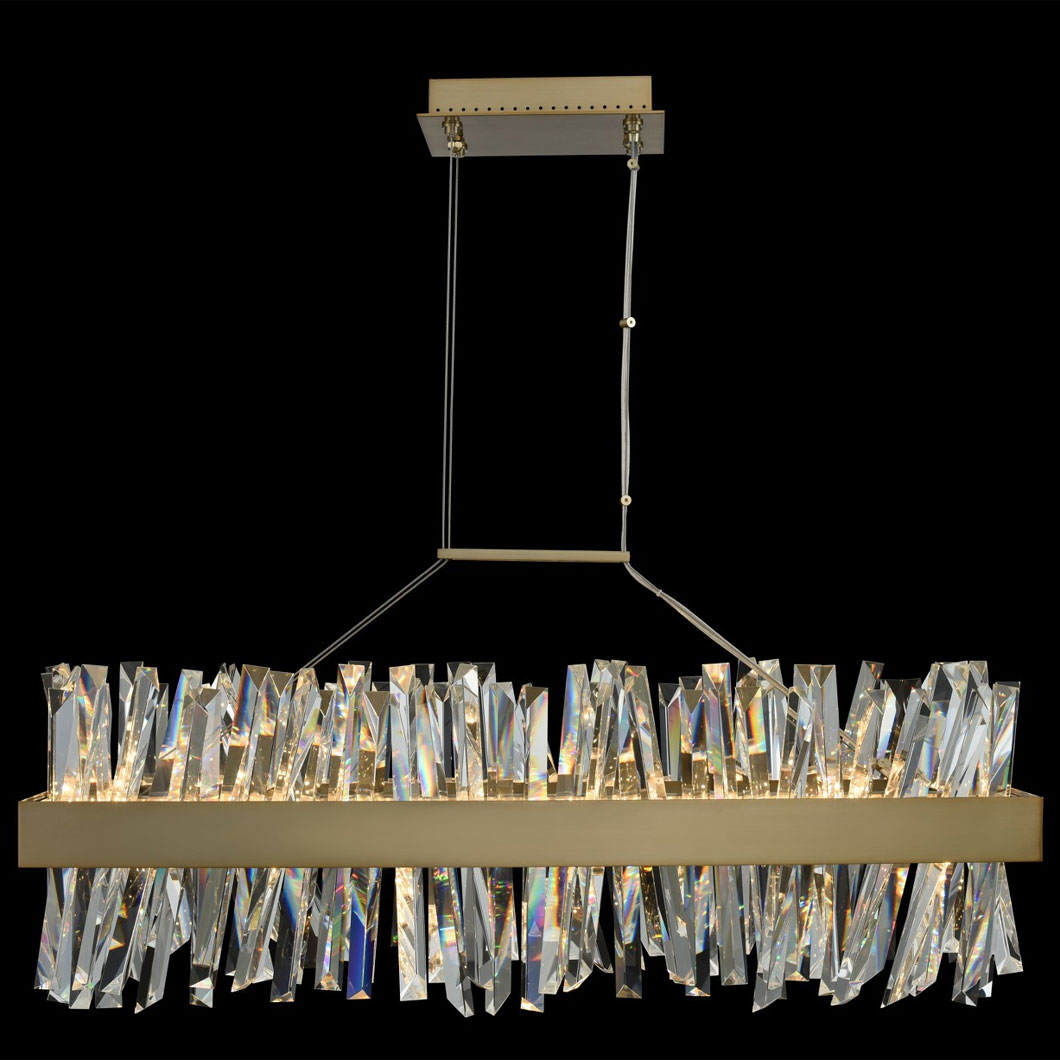 Allegri 030252-038 Glacier - 36 Inch 84W LED Rectangular Island, Brushed Champagne Gold Finish with Firenze Crystal Spears Crystal
