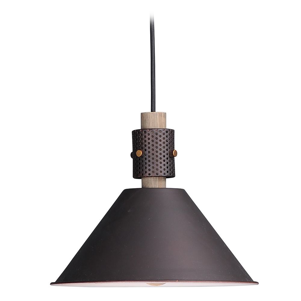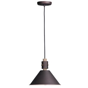 Maxim 10089OIWWD Tucson Metal Cone Pendant Ceiling Light, 1-Light 60 Watt, 10" H x 11" W, Oil Rubbed Bronze/Weathered Wood