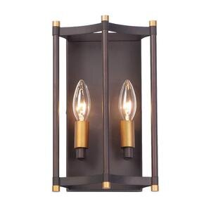 Maxim 13599OIAB Wellington Open Frame Candle Wall Sconce, 2-Light 120 Total Watts, 12" H x 7" W, Oil Rubbed Bronze/Antique Brass