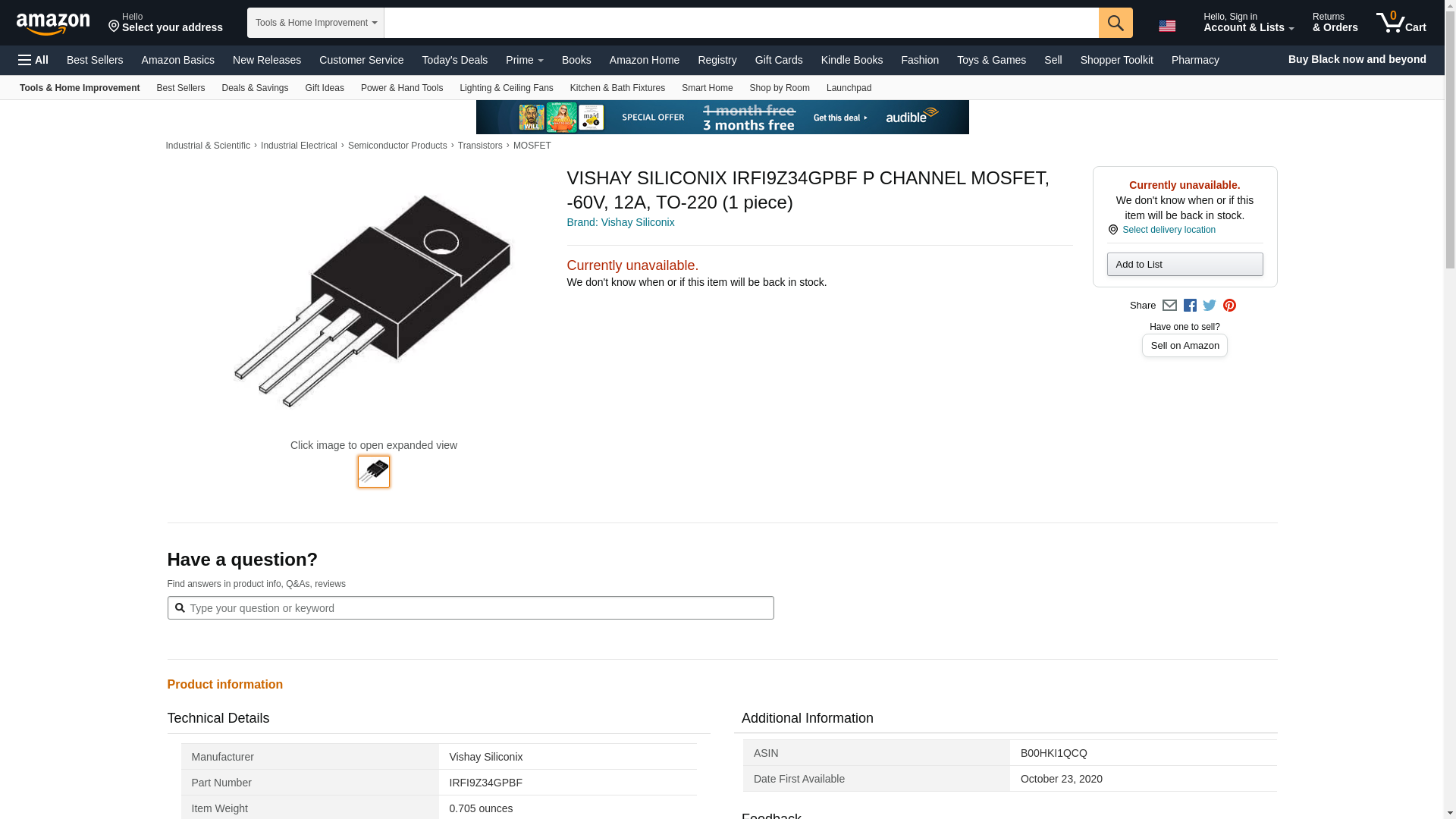 ![]() swatee.com | IRFI9Z34GPBF | 1 | 522 | 1 | 1 @ $6.50 |