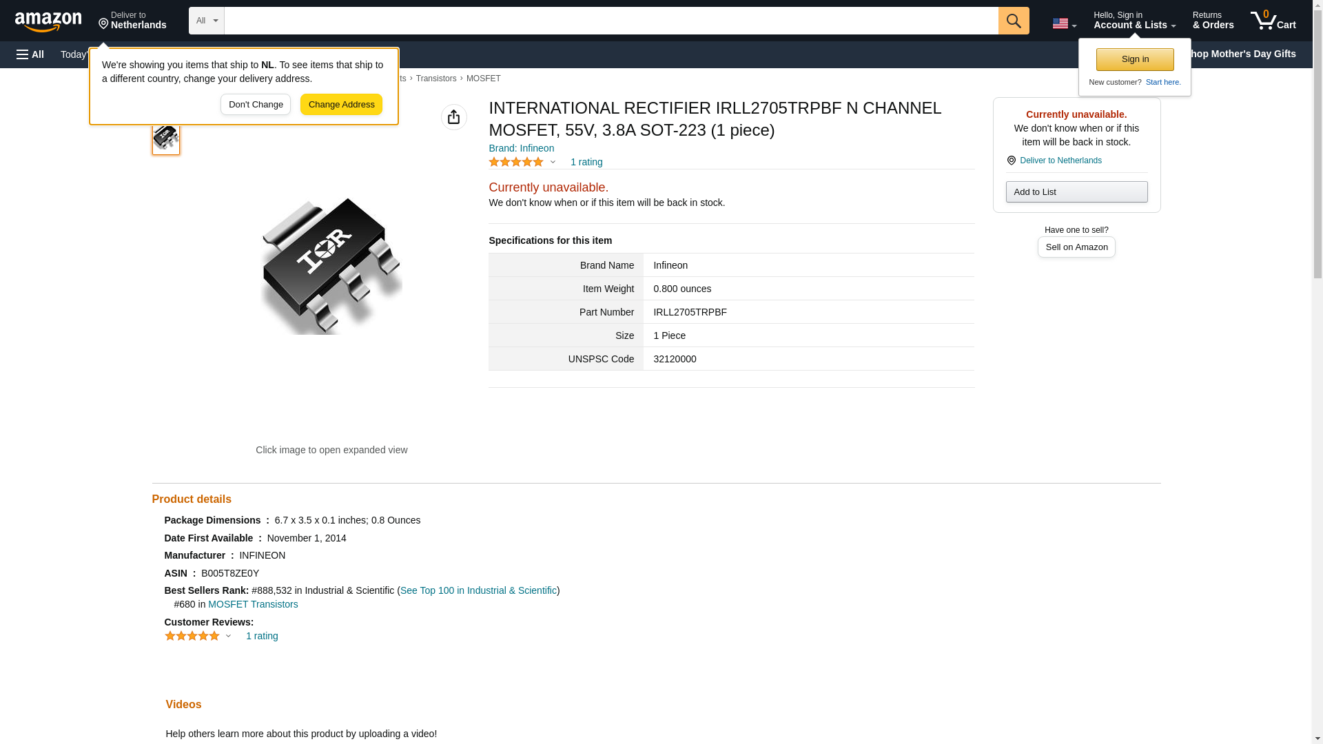 ![]() Radwell | IRLL2705TRPBF | 1 | 1 | ||
