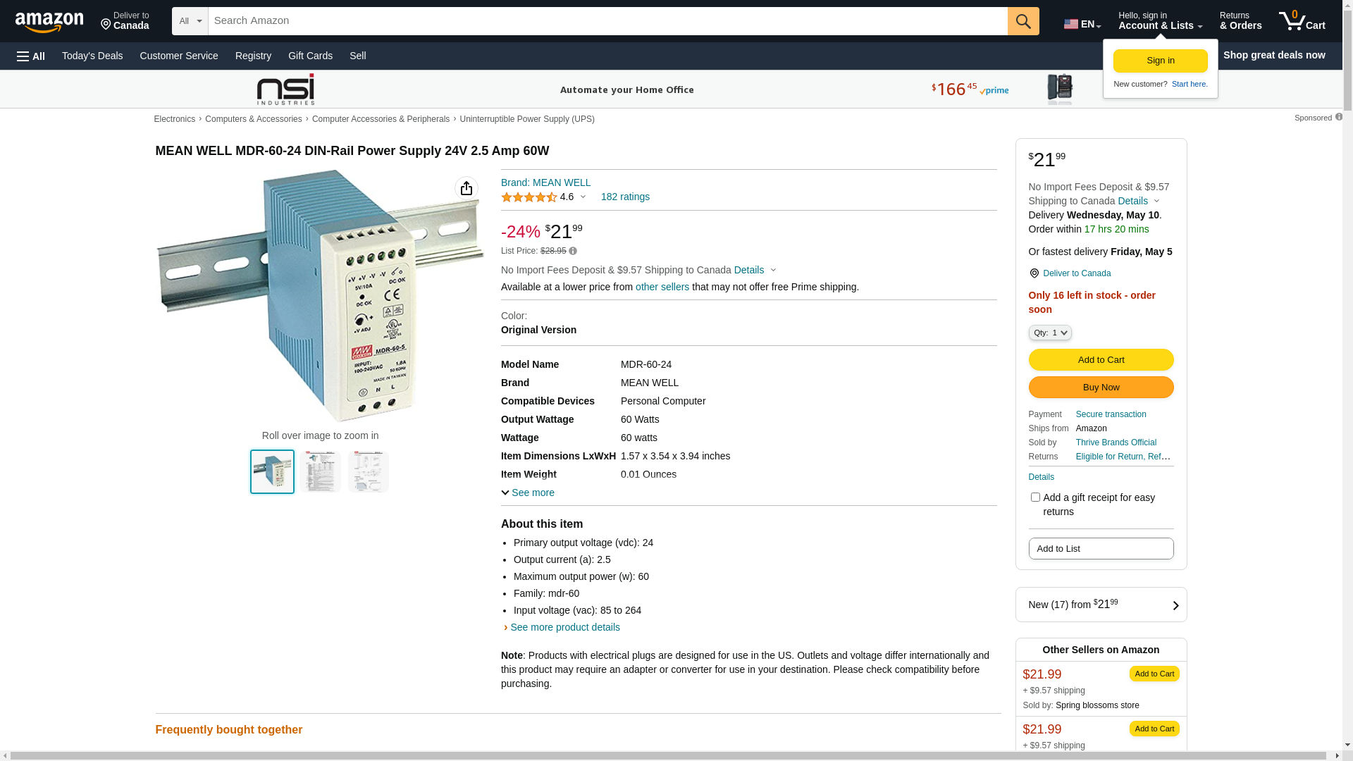 | electricautomationnetwork.com | MDR-60-24 | 1 | 1 | 1 @ $30.37 | |