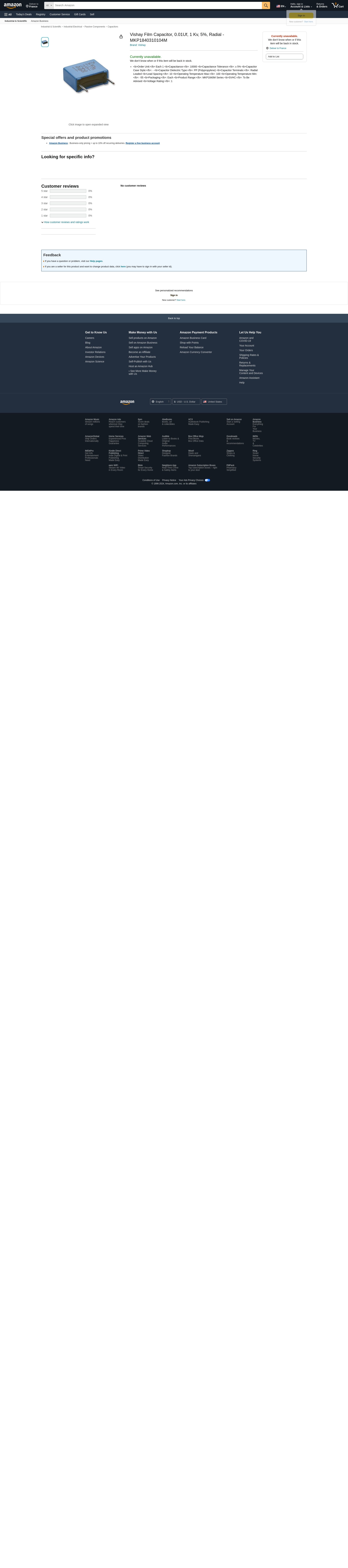 Vishay Film Capacitor, 0.01Uf, 1 Kv, 5%, Radial - MKP1840310104M