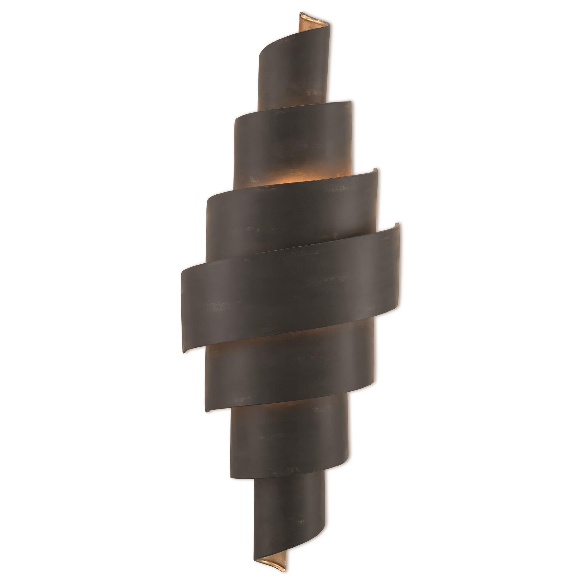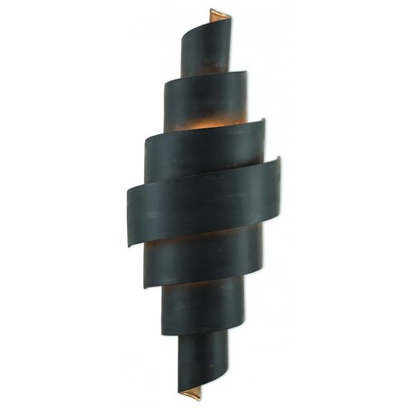 <p>Any way you slice it, our Chiffonade Wall Sconce has an elegant fluidity in its lines that curl toward the wall and end at the top and bottom with a lovely swirl. Made of wrought iron, the exterior of this sconce has been treated to a French black finish. To heighten the gracefulness of the piece, we've treated the interior to a painted gold finish. This also brings a warm glow to the illumination that wafts from between the arcing bands of metal.</p>