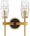 Eurofase 35937-012 Gladstone Clear Ridged Glass Wall Sconce Light, 2-Light 120 Total Watts, 14"H x 12"W, Antique Brass/Black