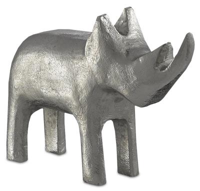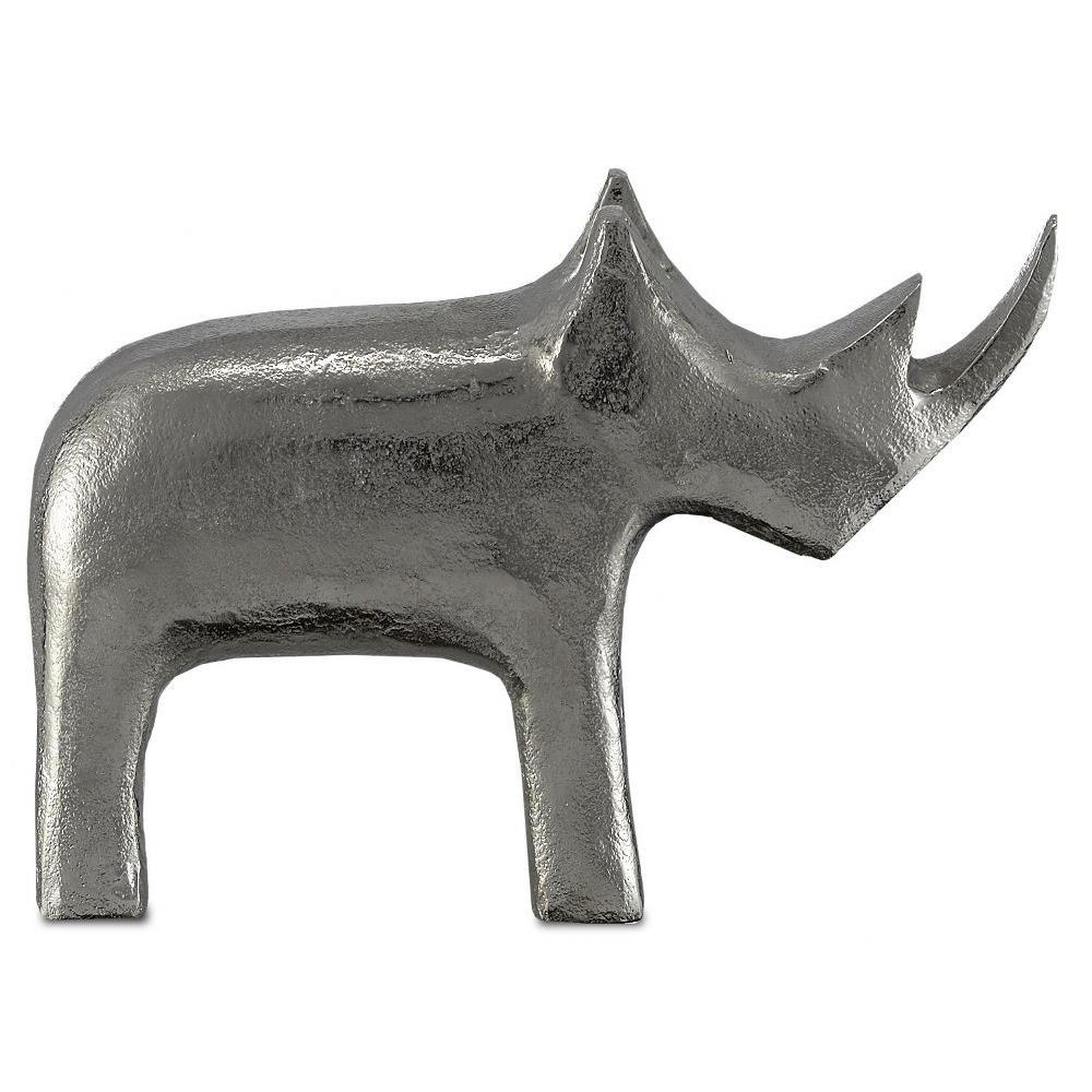 Currey and Company Kano Silver 10 3/4" Wide Rhino Figurine