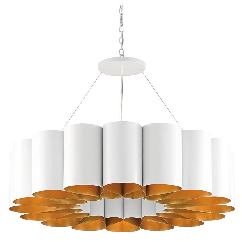Currey and Company 9000-0513 Contemporary Modern 16 Light Chandelier Finish, Pearl White/Gold Leaf