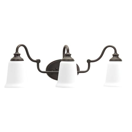 Progress Lighting Wander Collection 3-Light Etched Opal Glass Farmhouse Bath Vanity Light Venetian Bronze