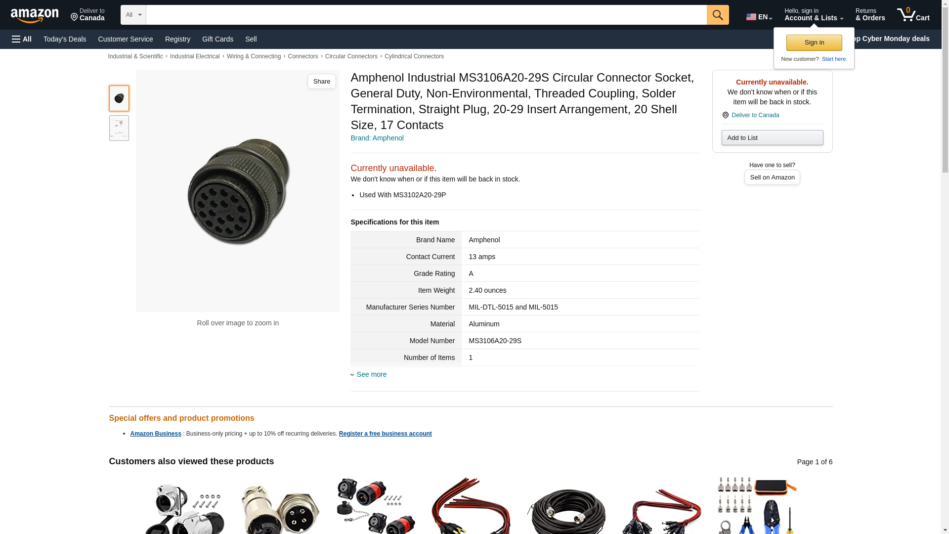 | MS3106A20-29S | 1 | 39 | 1 | 1 @ $19.23, 10 @ $18.85, 25 @ $18.06, 50 @ $17.70, 100 @ $16.77 | |