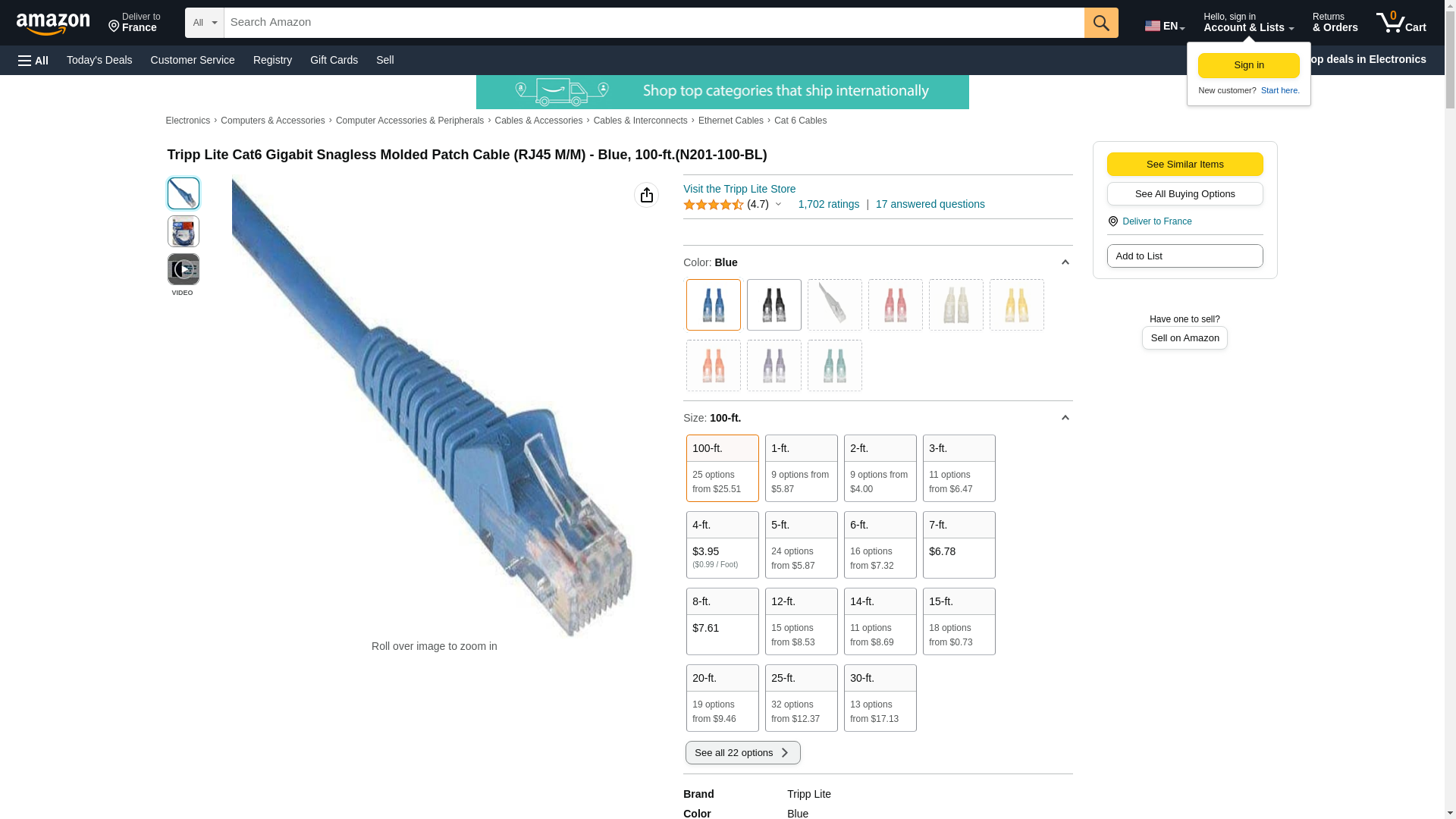 | Feature | "100 F. CAT6 CABLE: Distribute data, voice and video at higher speeds with Tripp Lite's Category 6 molded patch cable. Ideal solution for connecting high-speed network components like computers, printers, Internet-enabled gaming systems, copy machines, routers and modems. Length: 100 ft. / Color: Blue / Connectors: RJ45 male." |