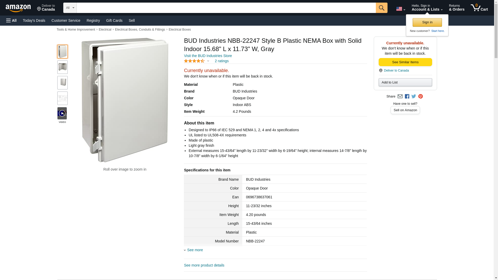 | Feature | BUD INDUSTRIES NBB-22247 ENCLOSURE, BOX, PLASTIC, GRAY |
