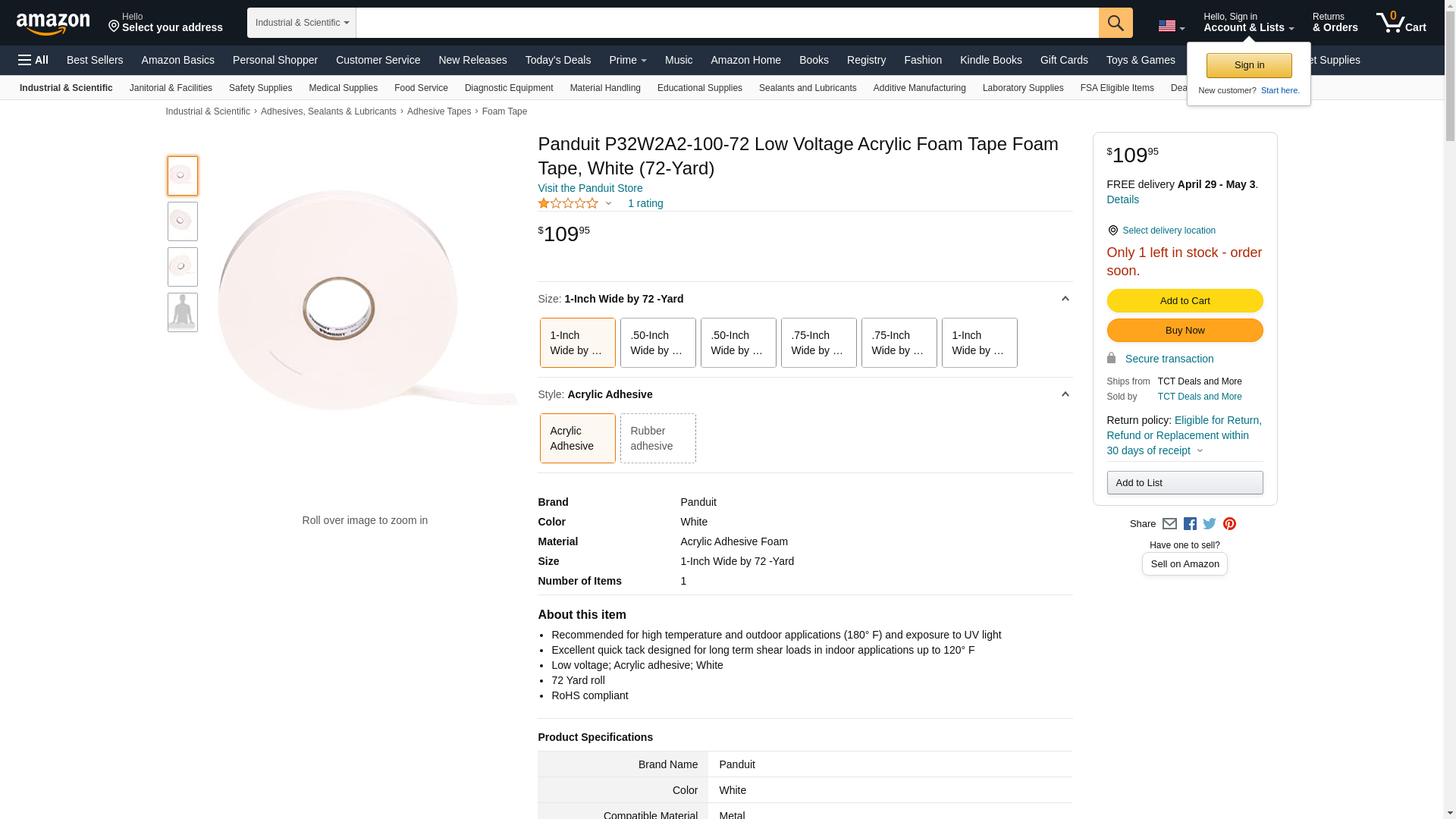 Panduit P32W2A2-100-72 Low Voltage Acrylic Foam Tape Foam Tape, White (72-Yard)