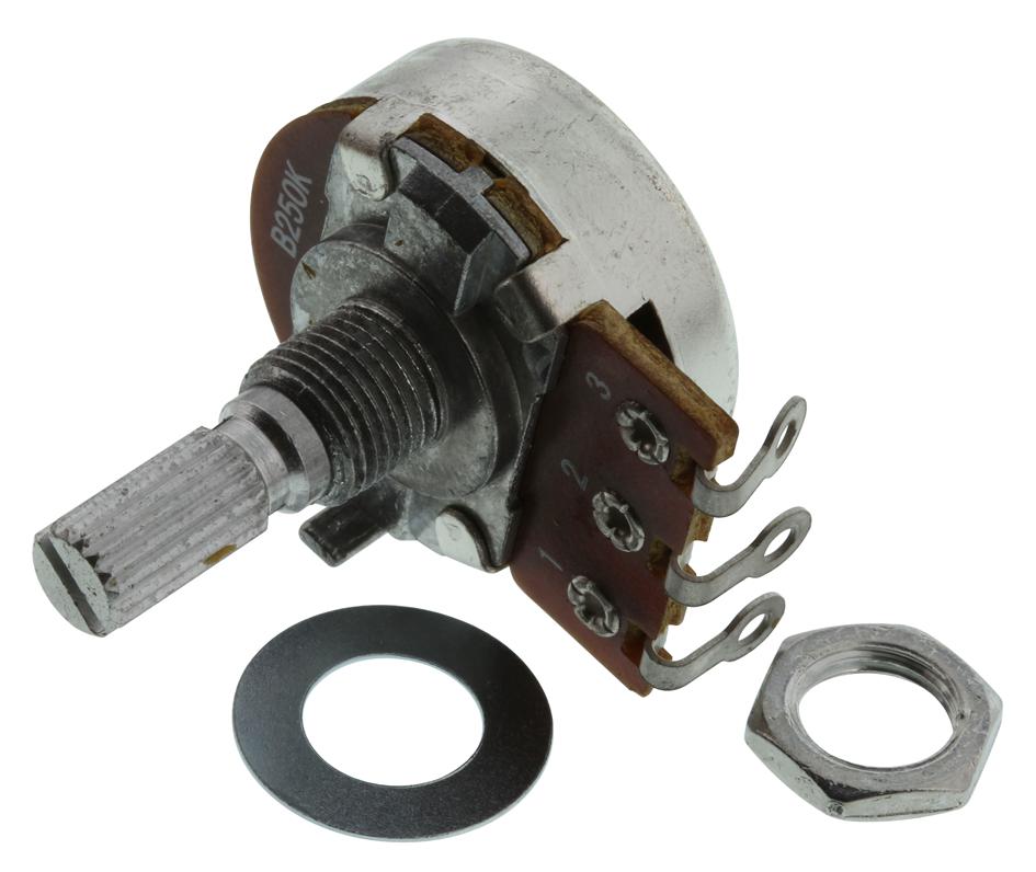 - <b>Price For:</b> Pack of 1<b>Order Unit:</b> Each 1 <b>Adjustment Type:</b>: - <b>No. of Gangs:</b>: 1 <b>No. of Turns:</b>: 1 <b>Potentiometer Mounting:</b>: Panel <b>Power Rating:</b>: 500 <b>Product Range:</b>: PDB241 Series <b>Resistance Tolerance:</b>: ± 20% <b>SVHC:</b>: No SVHC (17-Dec-2014) <b>Shaft Diameter:</b>: 6 <b>Shaft Length:</b>: 20 <b>Track Resistance:</b>: 250 <b>Track Taper:</b>: Linear <b>Voltage Rating:</b>: 500
