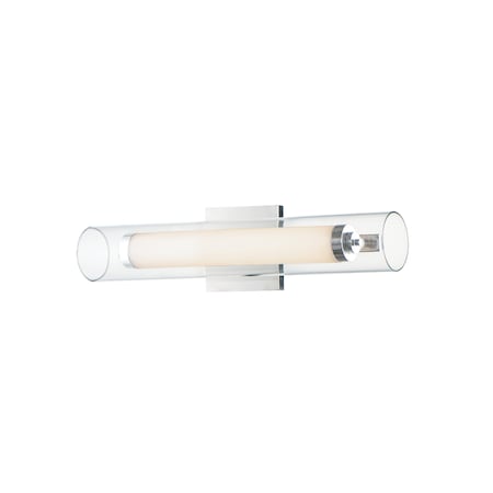 Clear glass outer tube encases a white acrylic inner tube capped with polished Chrome caps creates this clean contemporary design. Powered by high output LED which is nicely diffused make this collection suitable for both residential and commercial applications. <UL>Warranty: 5 Years<LI>Color Temperature: 3000 / Lumens: 1200 / CRI: 90+ / Rated Life: 50000 Hours / Mounting Direction: All / Shade Included: Yes.