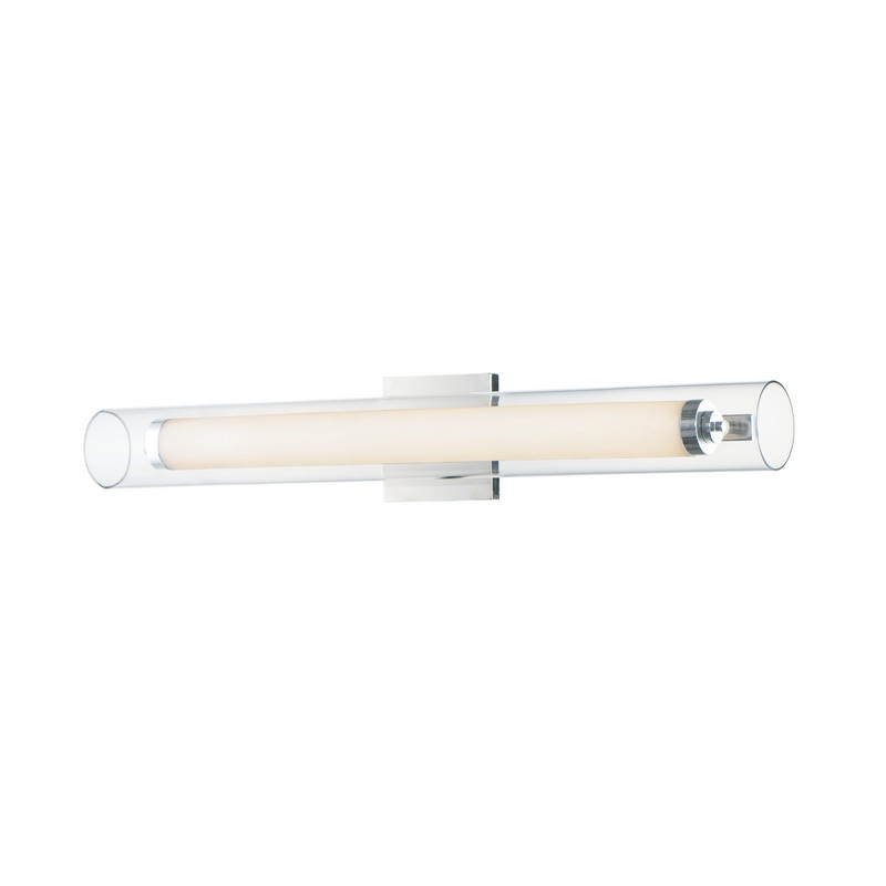 Clear glass outer tube encases a white acrylic inner tube capped with polished Chrome caps creates this clean contemporary design. Powered by high output LED which is nicely diffused make this collection suitable for both residential and commercial applications. <UL>Warranty: 5 Years<LI>Color Temperature: 3000 / Lumens: 1600 / CRI: 90+ / Rated Life: 50000 Hours / Mounting Direction: All / Shade Included: Yes.