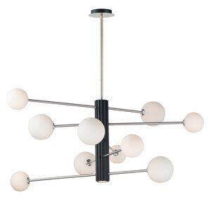 ET2 E24066-92BKSN Cog White Glass Globe LED Pendant Ceiling Lighting, 11-Light 47.96 Watt, 20"H x 45"W x 45"L, Black/Satin Nickel