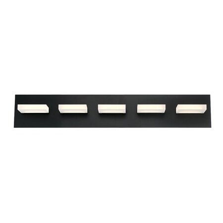 Eurofase 28022-025 Olson Frosted Acrylic Rectangular LED Bath Vanity Wall Mount Damp Rated, 5-Light 25 Total Watts, 5" H x 30" W, Black