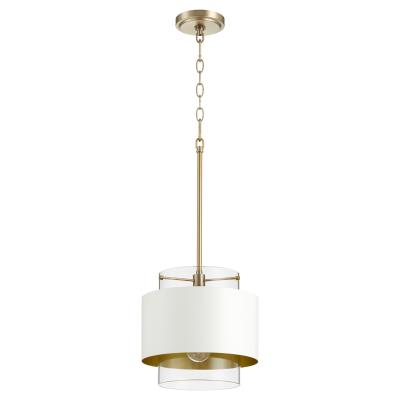 Quorum Lighting Aged Brass W/ Studio White Pendant Light with Cylindrical Shade | 8012-0880 | Destination Lighting