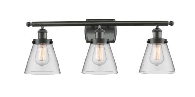 INNOVATIONS LIGHTING 916-3W-OB-G62 BALLSTON SMALL CONE 3 LIGHT 26 INCH CLEAR GLASS VANITY LIGHT, OIL RUBBED BRONZE,...