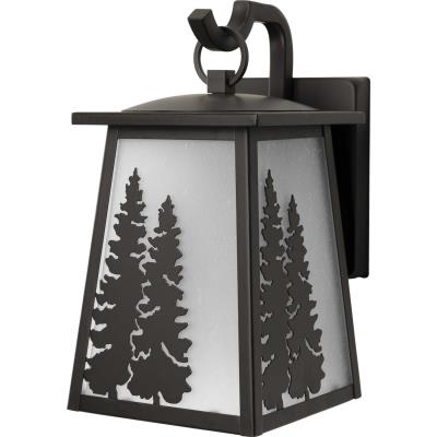 Progress Lighting Torrey Collection 1-Light Etched Seeded Glass Craftsman Outdoor Small Wall Lantern Light Antique Bronze